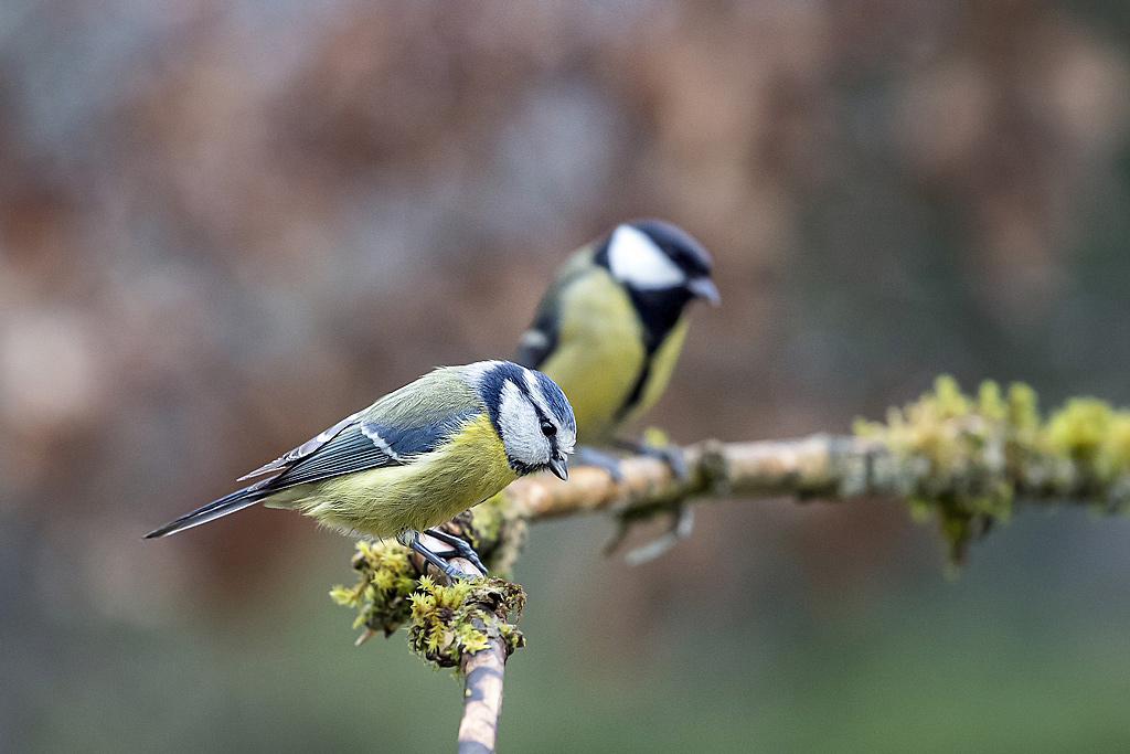 En voici une, au premier plan, partageant son perchoir avec sa cousine, la mésange charbonnière.